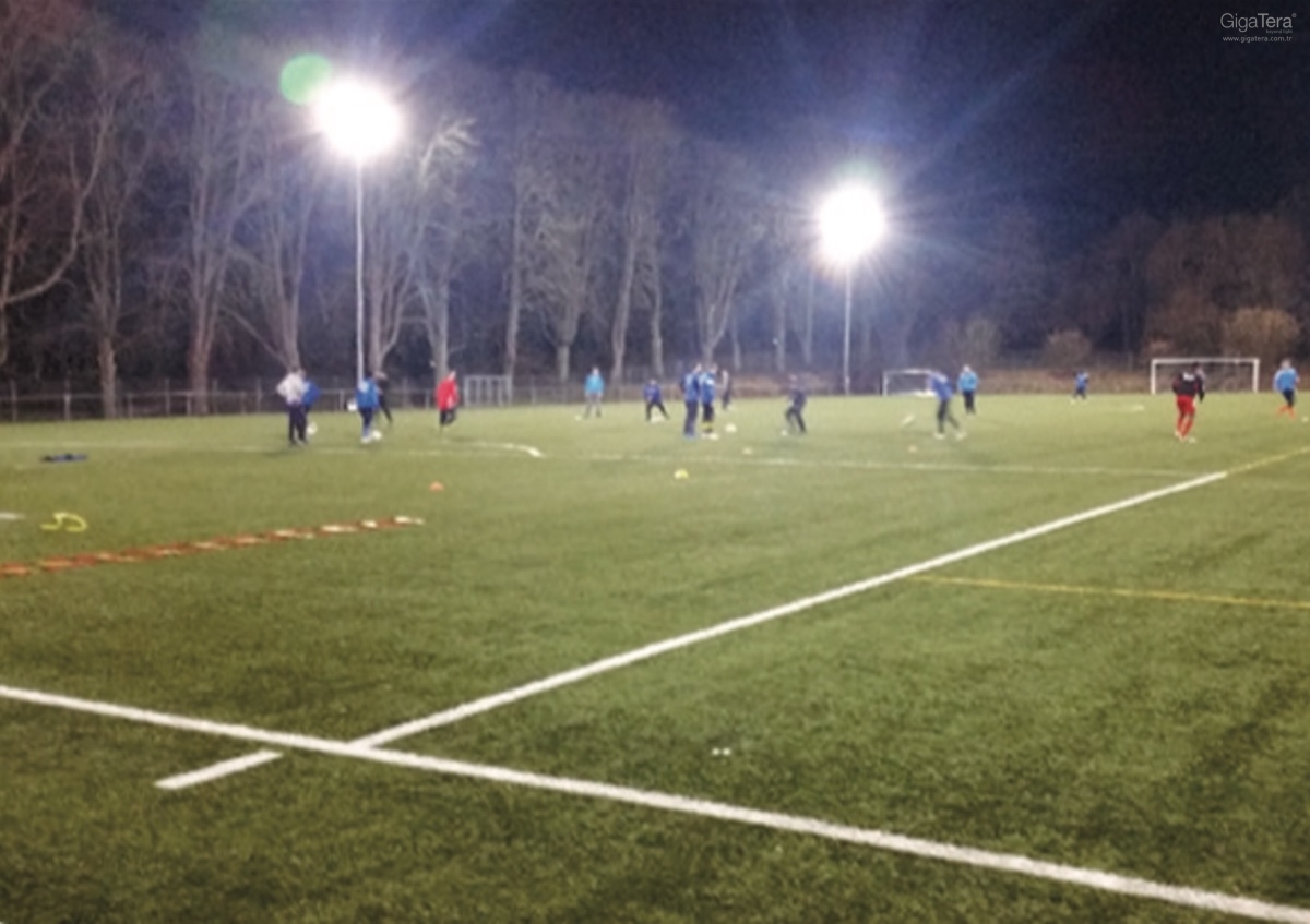 Melhor uniformidade, todos os jogadores de futebol ficam felizes em jogar. menos poluição luminosa contra a vizinhança.