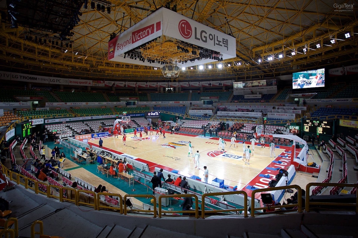 O Ginásio Coberto de Changwon, a quadra dos Changwon LG Sakers da Liga Coreana de Basquete (KBL), está localizado no Parque Esportivo Changwon em Changwon, província de Gyeongsang do Sul, e foi construído em novembro de 1996 com um orçamento de 19,5 bilhões de won, ou aproximadamente US$ 15.843.310. Tem sido usada como quadra do Sakers desde sua criação em 1997 e também sediou os 14º Jogos Asiáticos de handebol em Busan. Desde as temporadas de 1997-1998, a arena ficou em primeiro lugar em público todos os anos entre os estádios da KBL. Durante a temporada 2013-2014, os espectadores ultrapassaram 2 milhões, resultando em Changwon recebendo o nome de ‘Meca do Basquete’. A escala da arena é de 14.146 m2 e pode acomodar até 6.000 espectadores. A instalação para esta quadra consiste em 86 unidades de produtos de iodetos metálicos de 2kW substituídas por 59 unidades de produto GigaTera SUFA (400W / 800W).