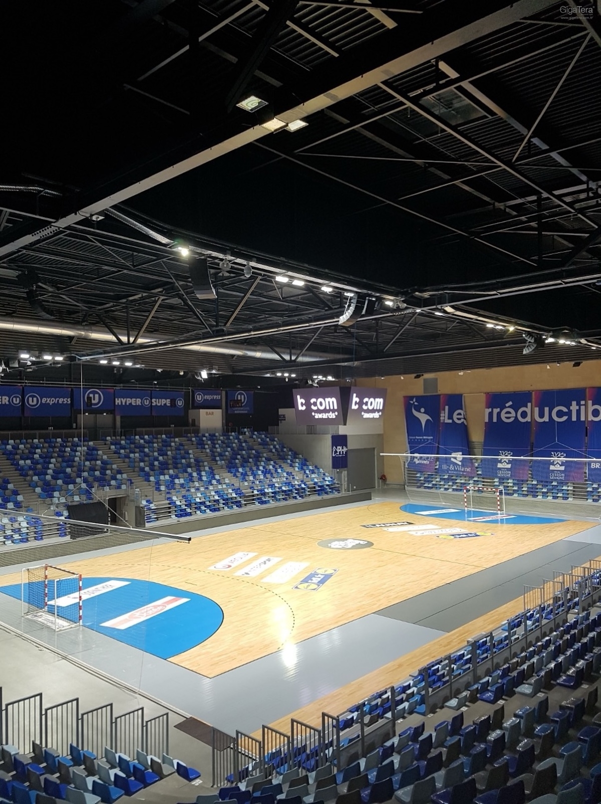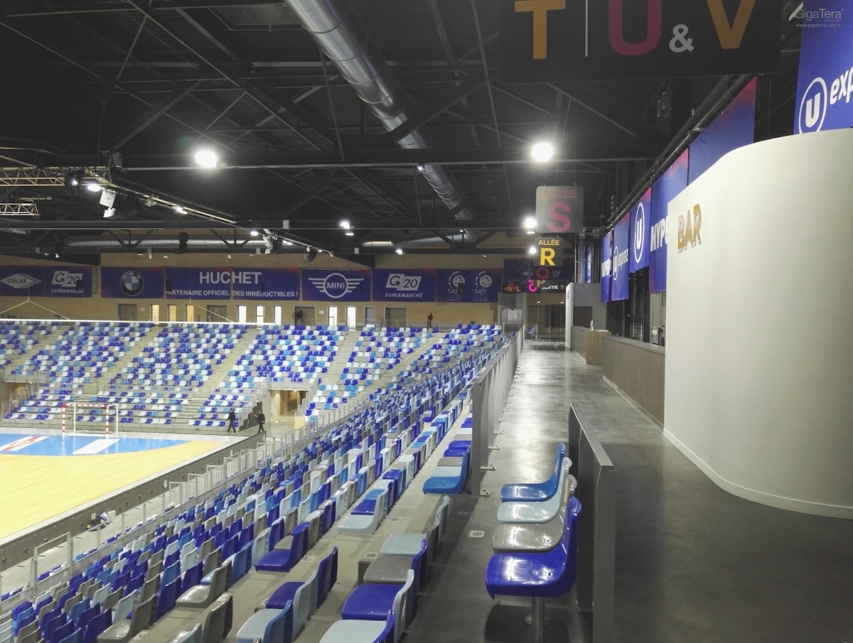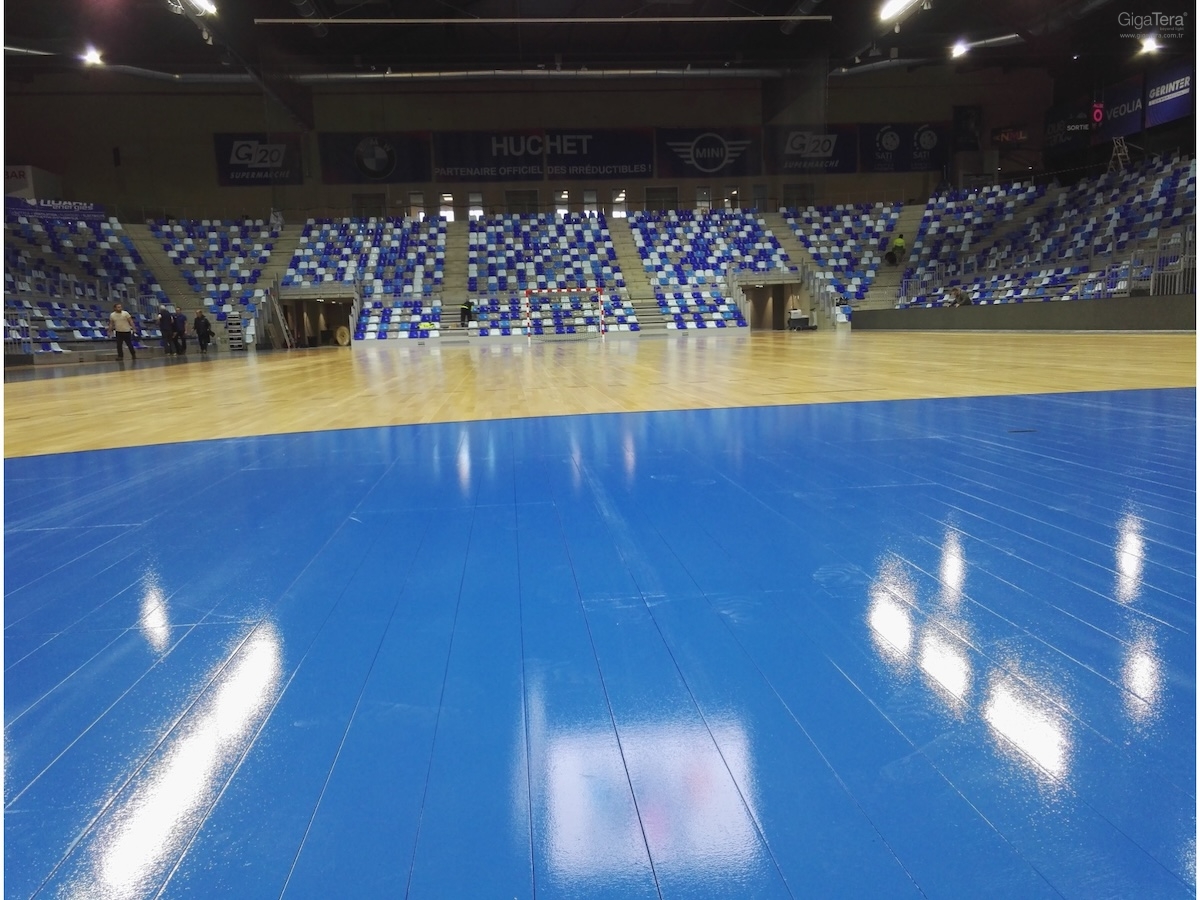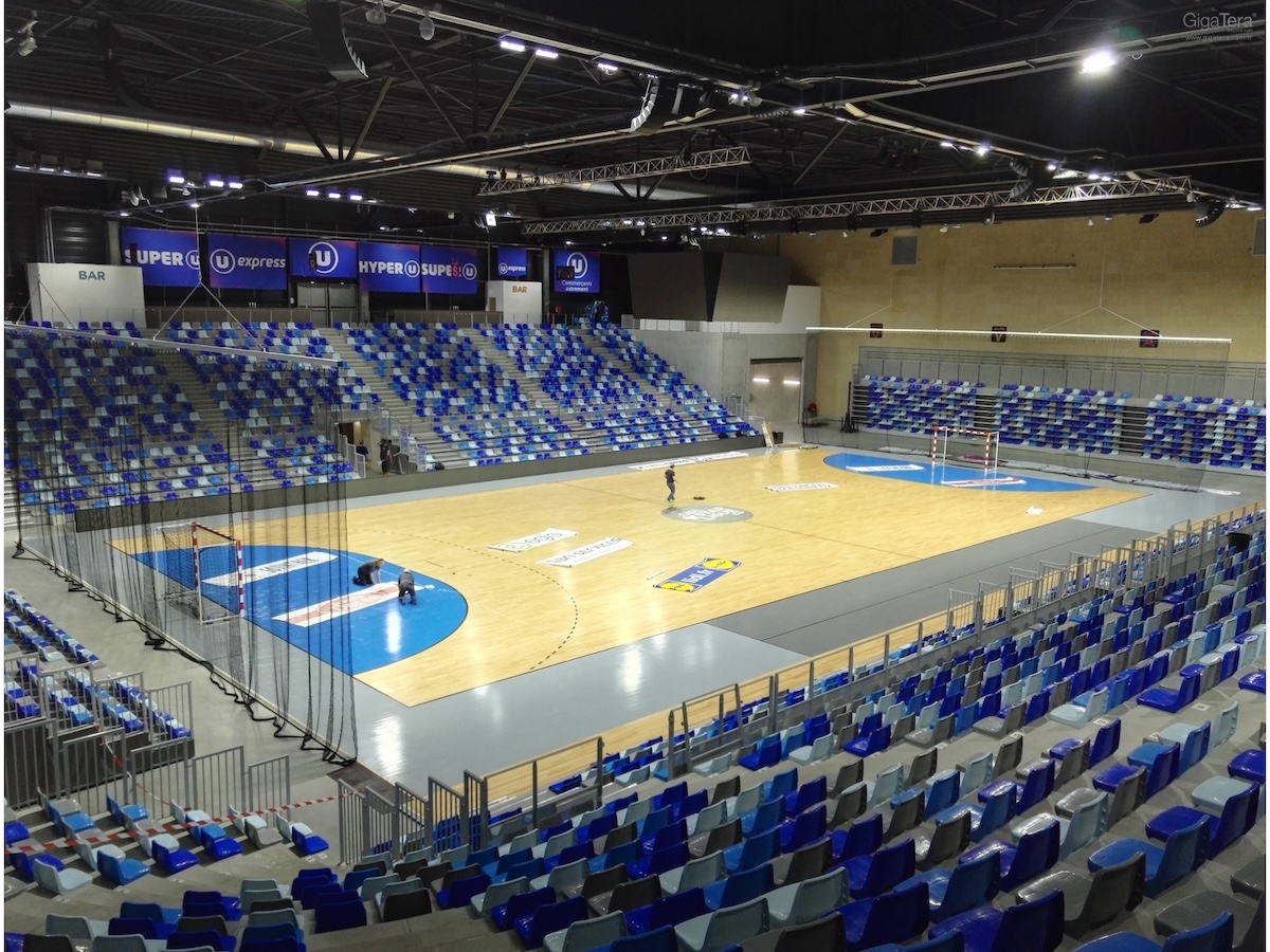 - Çıkarılabilir zemini ve 360 ° konfigürasyonu, optimum görsel konforla birçok disiplinin alınmasına izin verir: basketbol, hentbol, voleybol, badminton, tenis, jimnastik, masa tenisi, boks, paten, atlama.
